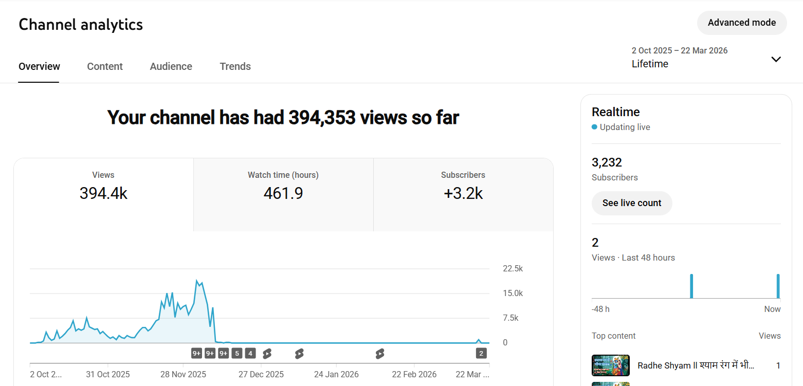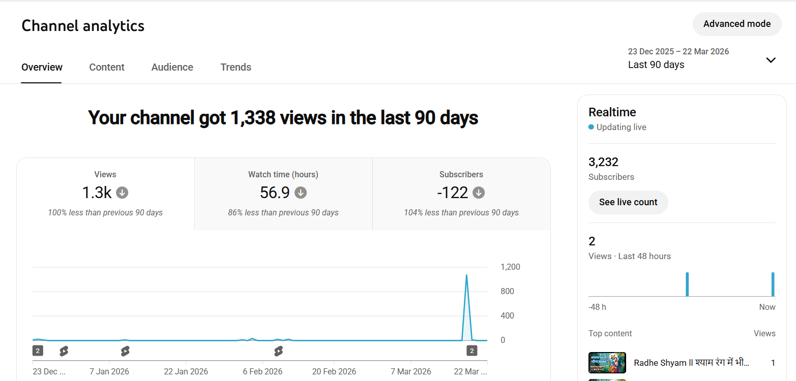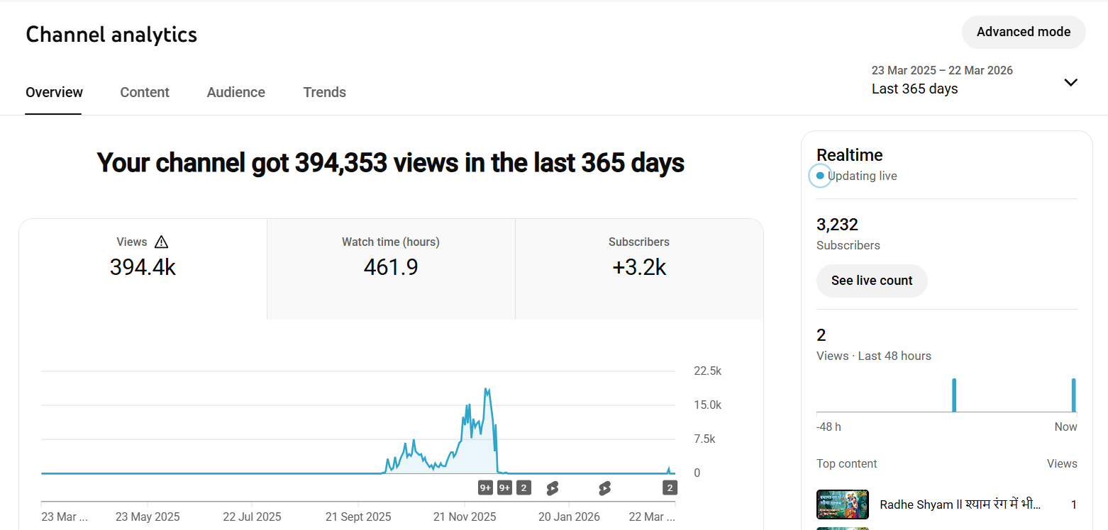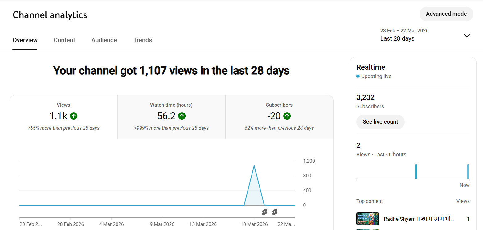 The Devotional Music Niche Is Evergreen And Has A Dedicated Audience Base That Continuously Consumes Content Related to Bhajans, Aartis, Mantras, And Spiritual Songs. This Means That The Demand For Content Remains Stable Throughout The Year, With Additional Spikes During Festivals And Religious Events. By Owning This Channel, You Get Direct Access To An Audience That Is Already Interested In Devotional Music, Which Saves Time And Effort Compared To Starting From Scratch.