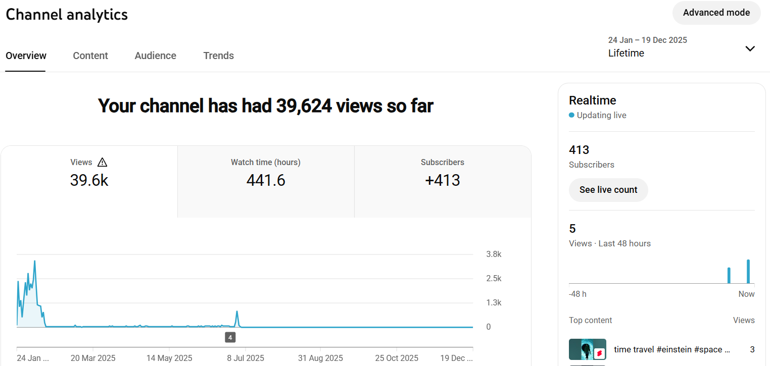 The existing 39K+ lifetime views provide a proven foundation that content is discoverable and watchable.