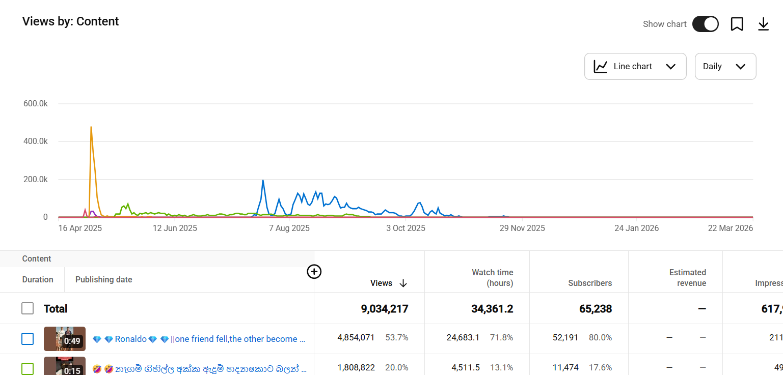 This Entertainment Youtube Channel For Sale was created on 16/04/2025 and features fresh and new content. This means the channel is relatively new but has already achieved impressive growth metrics, including 9M+ lifetime views. A newer channel with such performance indicates strong algorithmic favor and audience interest, making it a smart investment for those considering a youtube channel for sale. The clean growth trajectory suggests that with the right content strategy, the channel can scale even faster in the coming months.