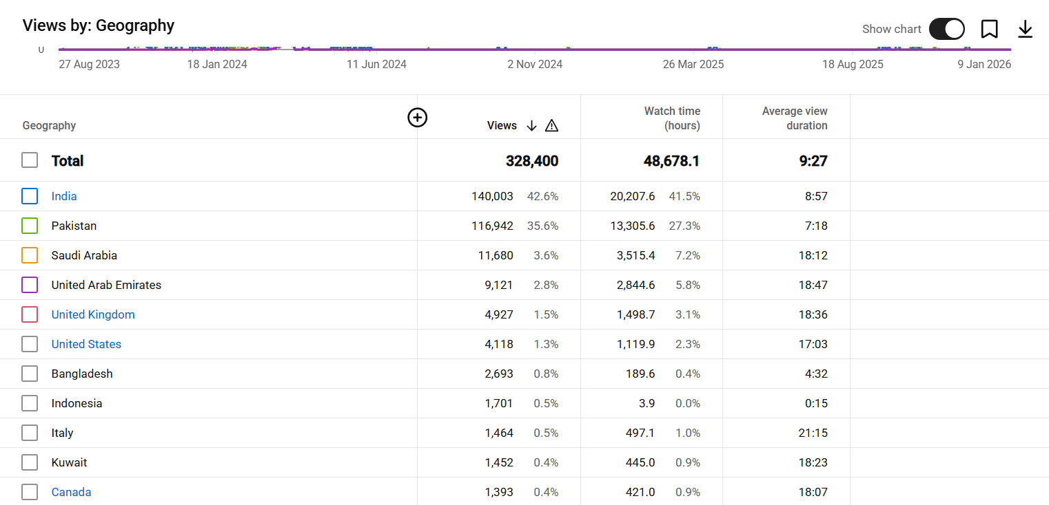 With over 328K lifetime views, the channel has already built a data history with YouTube’s algorithm, which helps with faster indexing and better discoverability for future uploads. This is a major advantage compared to starting a new channel from scratch. Buyers who buy youtube channel assets like this one benefit from existing SEO signals, audience behavior data, and watch history. The Islamic niche also benefits from consistent keyword search volume throughout the year, ensuring that this youtube channel for sale can maintain relevance over time.