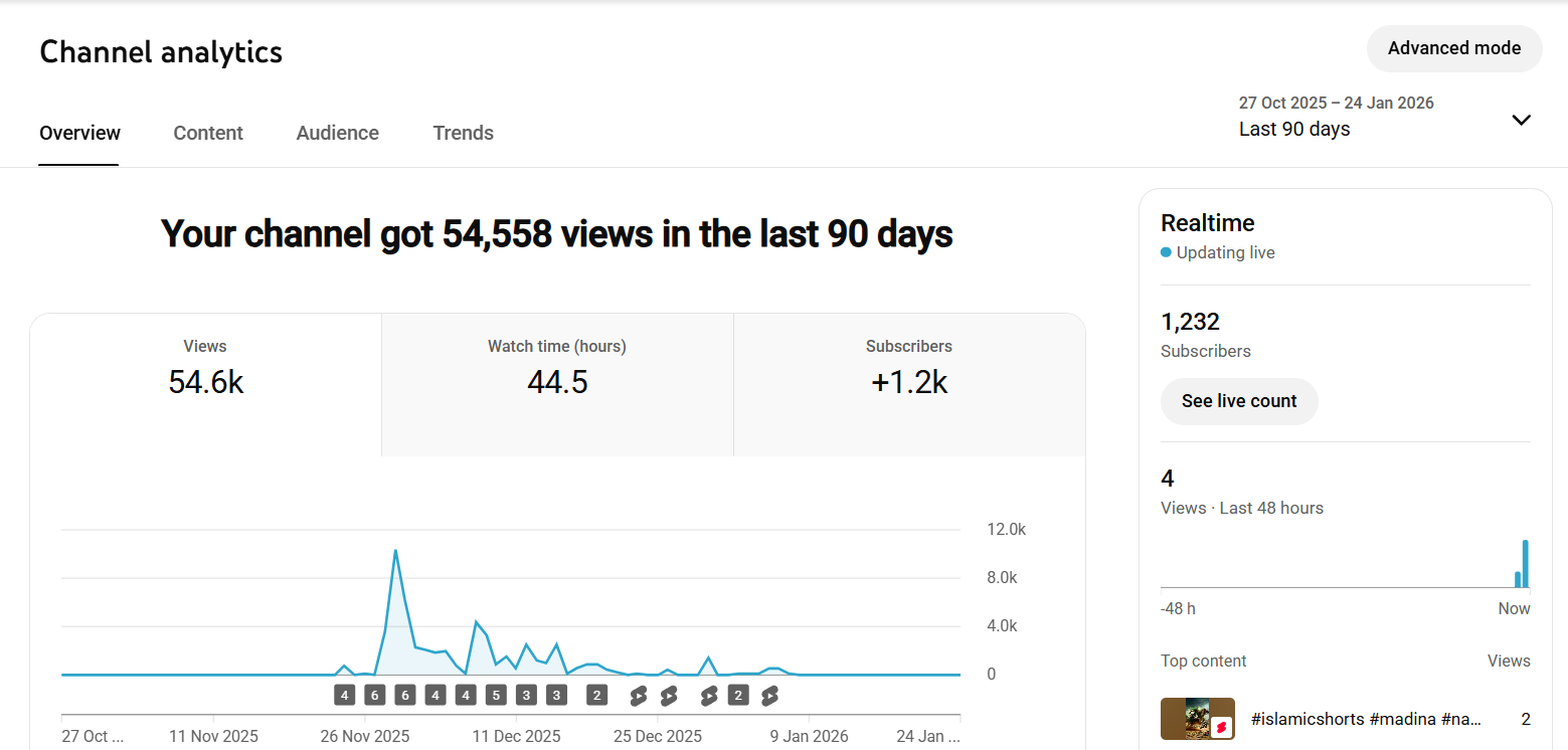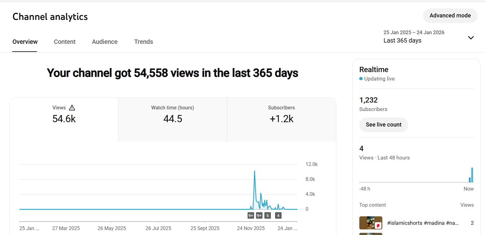 This opportunity is presented as a well established and carefully maintained Islamic Youtube Channel For Sale that has been developed with sincerity purpose and long term vision in mind. This channel currently has 1,200+ subscribers+ and 54K+ lifetime views+ which clearly reflect consistent audience interest organic reach and real engagement. The channel is completely clean with no copyright issues no community guideline strikes and no warnings of any kind. This makes it a secure and trustworthy digital asset for anyone looking to enter or expand within the Islamic content niche. The channel is eligible to be monetized once standard monetization criteria are fulfilled which creates strong future earning potential. This Islamic Youtube Channel For Sale is ideal for investors content creators educators or organizations who want a ready made platform with an existing audience base and solid performance history.
